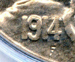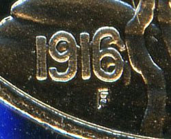 Over 1.2 billion Buffalo Nickels were minted from 1913 through 1938 at three mints; Philadelphia (no mintmark), San Francisco (S), and Denver (D). The mintmark can be found on the reverse under the denomination, while the designer's initial "F" is below the date. There were two varieties made. Type 1 nickels, minted only during the first few months of 1913, had the denomination FIVE CENTS on a raised mound. As early as April, rapid wear in this area became evident on the coins in circulation, so Barber finally got his chance to modify Fraser's design. He cut away the mound and placed the bison on a straight line, then put the denomination in the recessed area under the line. This solved the reverse wear problem, but then he kept going. He smoothed out much of the detail and granularity in both the Indian's portrait and the bison's hide. The resulting Type 2, however, lacked much of the artistic impact of the original. Barber again made minor modifications in 1916, and some specialists consider this a third type, but most type collectors only consider the Type 1 and 2 coins as actual varieties. It is strange that during all his modifications, Barber never addressed the problem of the date wearing down too rapidly.